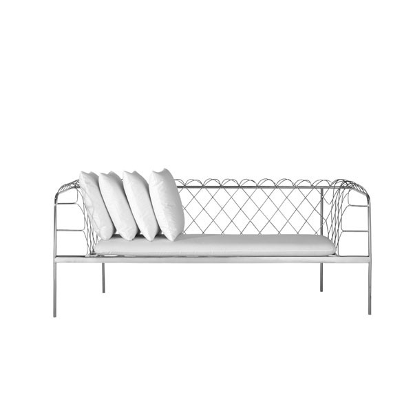 Réalisé en acier inoxydable, ce canapé résiste aux intempéries et s'installe aussi bien dans votre salon que sur votre terrasse ou dans votre jardin.