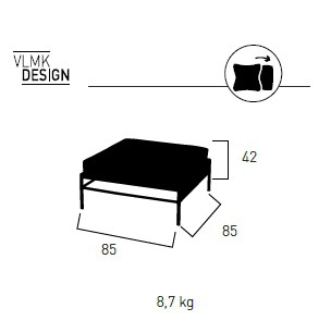 Maße: L85cm x Breite 85cm - Sitzhöhe 42cm - Gewicht: 8,7KG