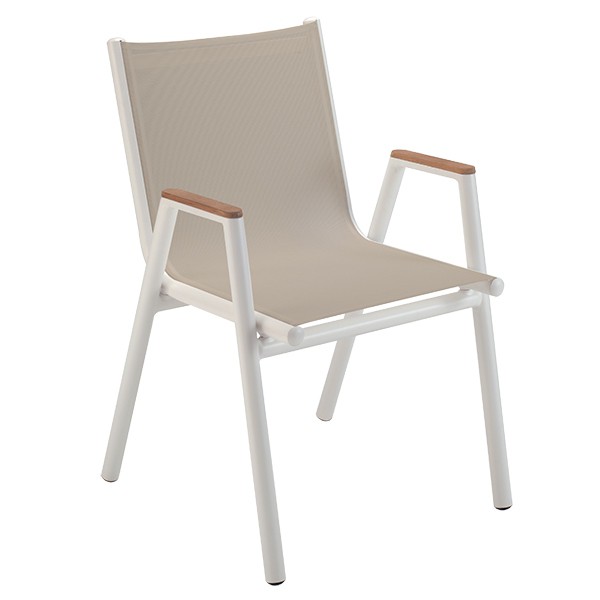 Esszimmerstuhl für den AußenbereichGestell aus weißem Aluminiumrohr - Verkleidung aus Batyline® ISO- oder Eden-Canvas - Armlehnen aus Teakholz naturbelassen