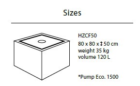 Abmessungen: L80cm x b 80cm x H50cm - 120 L Volumen - Gewicht 35 KG