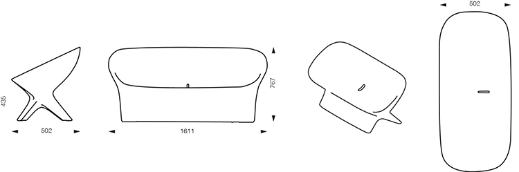 Vollständig recycelbar und hergestellt in FrankreichMaße: L161cm x Breite 50cm x H77cm - Sitzhöhe 44cm - Gewicht 30KG