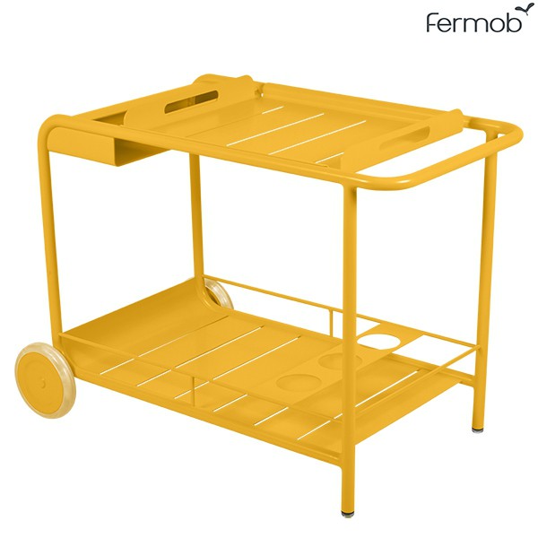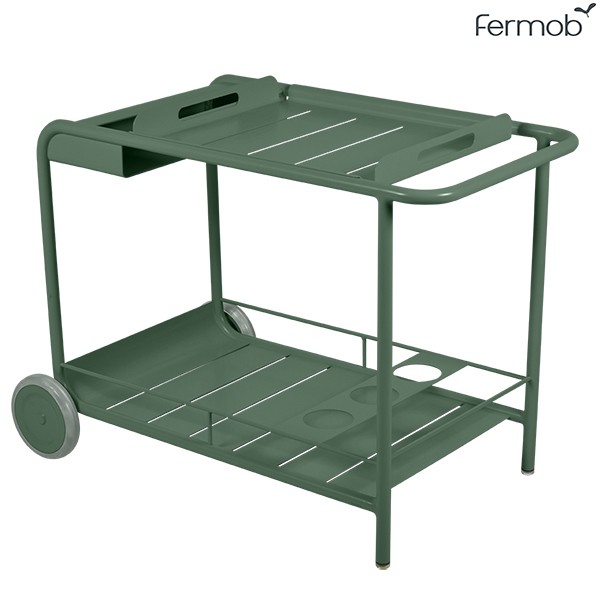 La Desserte / Bar Roulant Luxembourg von Fermob ist ein funktionaler und gestalterischer Outdoor-Service. Es ergänzt die berühmte Luxemburger Sammlung auf brillante Weise. Dieser Service / Rollbügel hat 2 Räder und einen breiten Griff für einfache Bewegung. Seine Aluminiumblechschale ist abnehmbar, sehr praktisch, um Ihren Gästen Speisen und Getränke zu servieren. Wie der Rest der Luxemburger Kollektion besteht dieser Service aus Aluminium, das mit Anti-UV-Pulverfarbe beschichtet und für den Außenbereich hochbehandelt ist. Erhältlich in einer breiten Palette von trendigen Farben, ermöglicht es Ihnen, einen Essbereich im Freien mit Modernität zu vervollständigen.