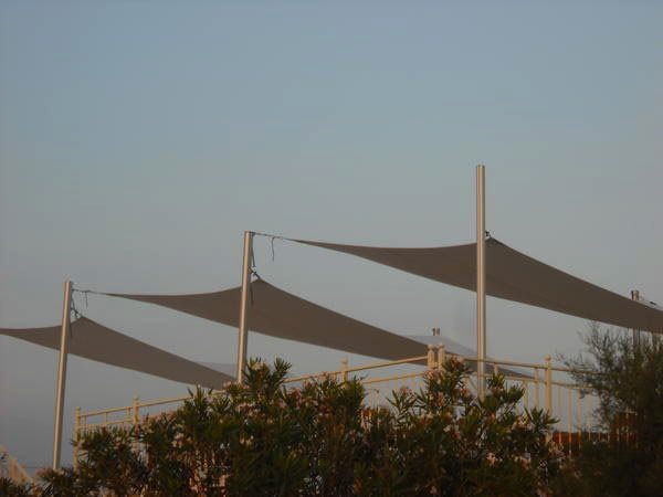 Schleier der Schattierung Wand montiert oder auf Säule (separat erhältlich)Das Segel muss gespeichert werden, im Falle von schweren Regen oder Wind Violents (> 70 km/h)