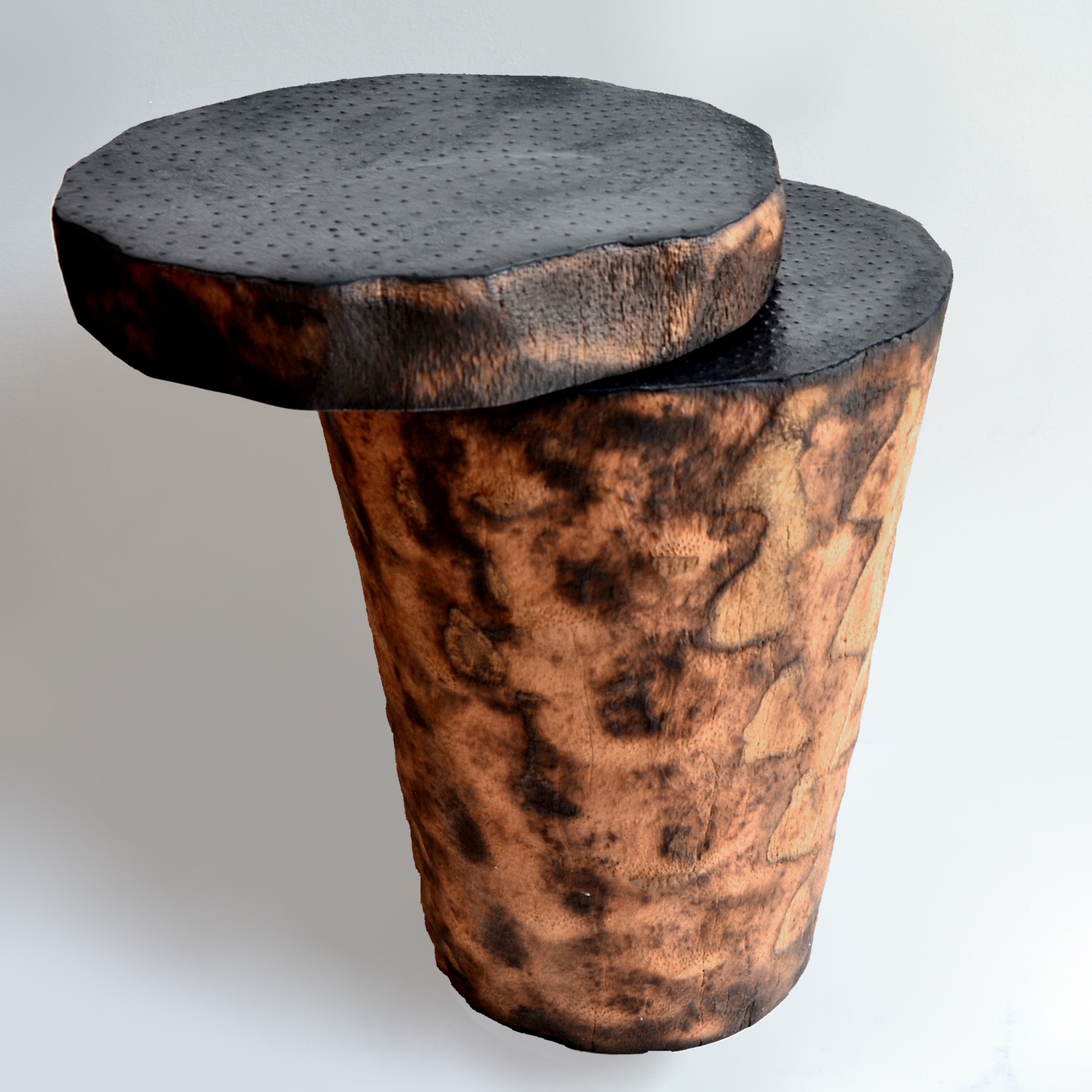 Maße: H 50cm X Ø 40 cmStruktur in Palmwood Argentiniens und braunem Leder bedeckt Tabletts