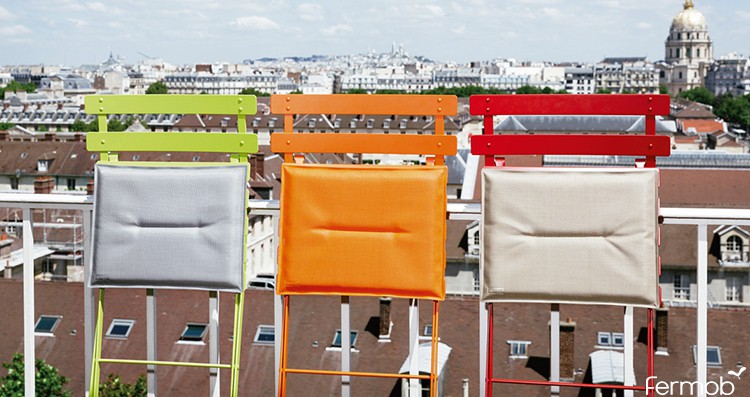Galette angepasst an den Bistro Metal Chair und den Natural Chair BistroOutdoor-Gewebe TTE Batyline® (PVC-beschichtetes Polyester): beständig gegen Flecken, UV, Schimmel, Verformung.