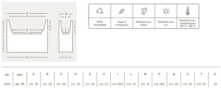 Ideal zusammen mit dem Topf Kube Turm aus der gleichen SammlungLa Jardinière Kube-Turmin Euro3plast ist eine zeitgenössische ideale Pflanzgefäß für Räume Dank seines hohen und schmalen. Produziert im Harz (PE) ungiftig und recyclebar, die extreme Widerstandsfähigkeit gegen extreme Temperaturen (-65 ° + 85 °), Schock und UV-Licht, garantieren dies Pflanzer wurde speziell für alle Außengebiete zu entwickeln und echte Pflanze Partitionen erstellen. Erhältlich in 4 Farbtrends, der Gärtner Kube Turm eignet sich zusammen mit dem Topf Kube Tower einen Rhythmus für dein Werk-Layout erstellen.