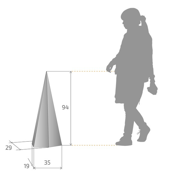 -L35cm x Breite 29cm (kleinste Facette 19cm) x H94cm - Gewicht: +/- 3KG-L52cm x Breite 33cm (kleinste Facette 22cm) x H149cm - Gewicht: +/- 6KG