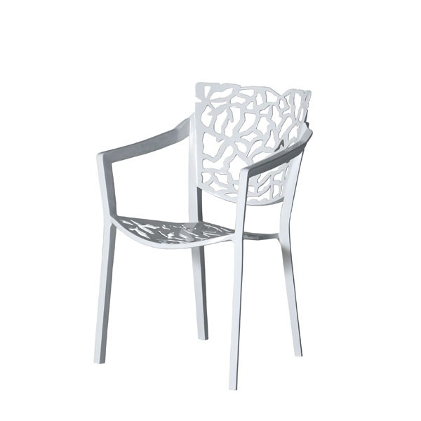 Aus weiß lackiertem Aluminium Fusion, PetiteMadeleine Wetter beständig und kann sitzen auf Ihrer Terrasse oder in Ihrem Garten ohne Angst.