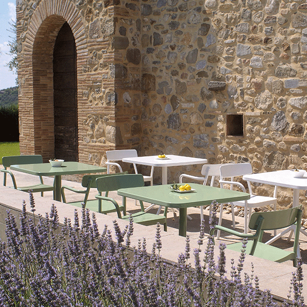 Auch in der Version ohne Armlehnen mit dem Set von 4 Stühlen Grace erhältlichDas Grace Sessel Set ist ein Set von 4 Grace Sesseln , die vom Designer Samuel Wilkinson für Emu entworfen wurden. Mit einer lackierten Aluminiumstruktur bietet dieser Gartenstuhl eine hervorragende Witterungsbeständigkeit. Dieser Sessel im Vintage-Stil ist leicht und stapelbar, sodass Sie Ihre Stauräume optimieren können. Die Grace-Kollektion ist in trendigen Farben erhältlich und umfasst eine Reihe von Stühlen, einen klappbaren quadratischen Tisch sowie einen faltbaren Hocker und einen Stehtisch. Es schafft einen schicken Entspannungsbereich nach Ihren Wünschen, indem Sie, wenn Sie möchten, die verschiedenen angebotenen Farben mischen.