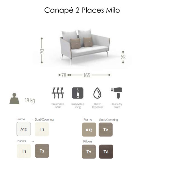 Auch als 3-Sitzer Milo Sofaversion erhältlichDas Milo 2-Sitzer Sofa von Talenti ist eine Kreation des Designers Marco Acerbis. Mit einer Struktur, die vollständig aus weißem oder taupefarbenem Aluminium besteht, ist dieses Outdoor-Sofa mit einem Sitzkissen und Rücken- und Zierkissen dekoriert. Die Kissen bestehen aus Textilengewebe und sind mit Quick Dry-Schaum ausgestattet, der speziell für das Wetter entwickelt wurde. Sie sind herausnehmbar und pflegeleicht. Dieses Sofa ist ideal für die Komposition eines modernen Gartenmöbels.