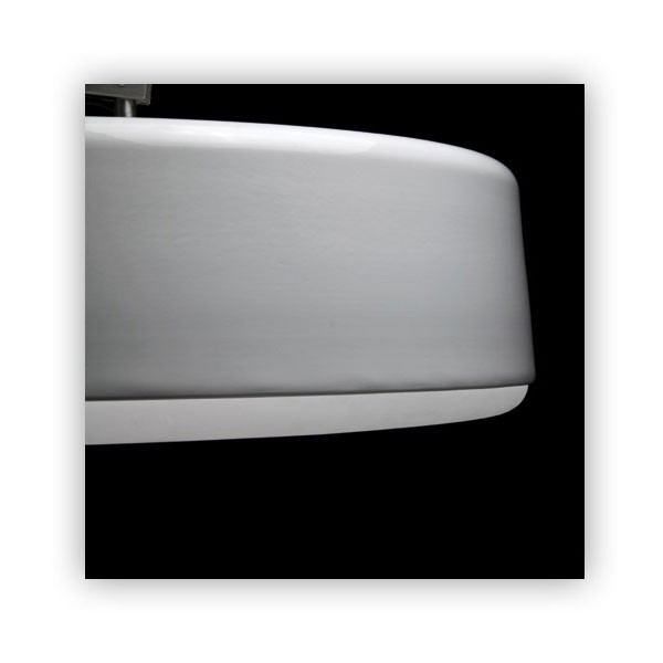 Diffusor aus Polyethylen weiß sandgestrahlt mit Lampenschirm in lackiertem Aluminium und Griff Kunststoff für einfache Justierung des Diffusors