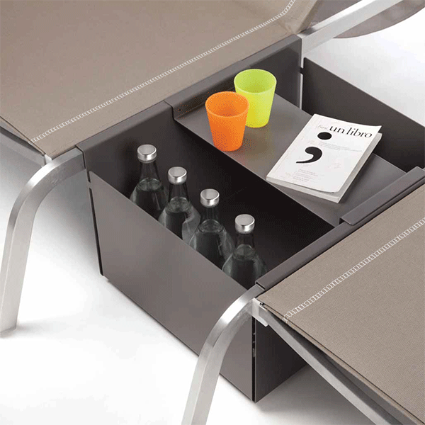 Die Storage Box L3 in Coro ist ein optionales Element des Bereichs Sonnenbaden L3 von der italienischen Marke, die Ihnen erlaubt, Ihre Zeitschriften zu speichern oder anderen Taschen von Cremes, Hände zu tragen, ohne dass die Ästhetik Ihrer Schwimmbad-Betten.