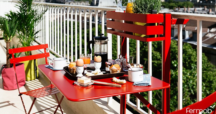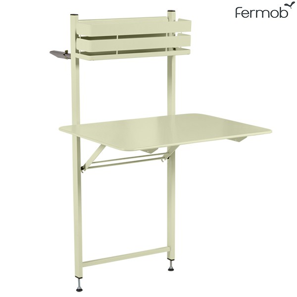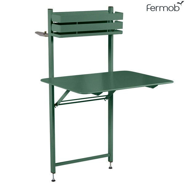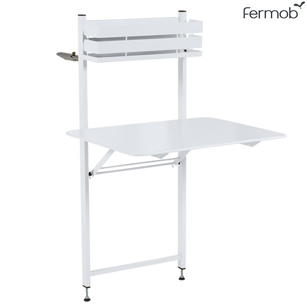 Farbe: Baumwollweiß, Muskatnuss, Rost, roter Ocker, Chili, Mohn, Linde, Opalgrün, Honig, Kapuzinerkresse, Pralinenrose, Kaktus, Rosmarin, Zeder, Süßholz, Metallgrau, Lagunenblau, Sturmgrau, Kohlenstoff, Acapulcoblau, Abgrundblau, Tongrau, gefrostete Zitrone, eisige MinzeDer Table Balcon Bistro von Fermob ist ein ultrafunktionaler Tisch, der sich dem berühmten Bistro-Sortiment anschließt. Dieser kompakte und klappbare Tisch bietet Platz für 2 Personen, um ein kaltes Getränk zu essen oder zu trinken. Mit seinem Faltverdeck ist er ideal für enge Platzverhältnisse. Es hängt an einem Geländer oder an einer Außenwand. Es passt sich der Höhe von Balkonen an und sorgt dank seines Wagenhebersystems für Komfort und Stabilität.
