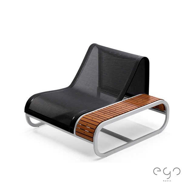 Die Kombination seiner Materialien, Aluminium und Batyline für die Struktur und Corian® oder Teakholz für den Strand, verleiht ihm eine außergewöhnliche Eleganz und Widerstandsfähigkeit.