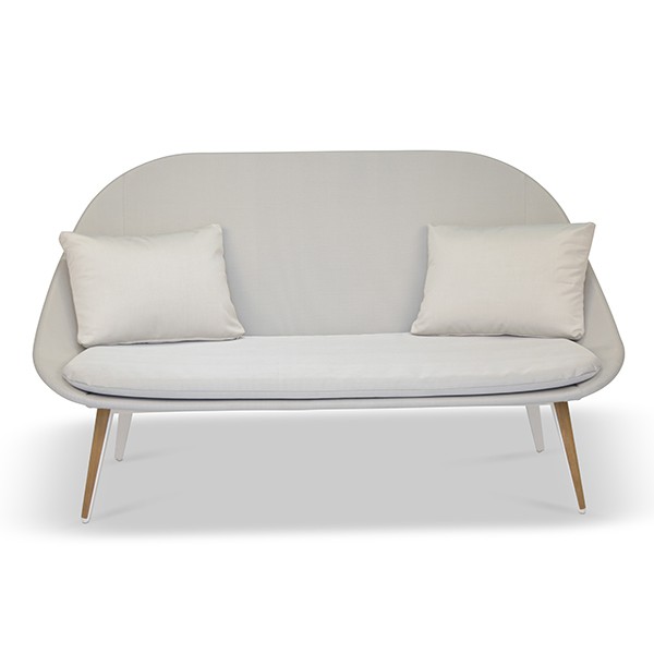 Sofa für den Außenbereich - 2-Sitzer-SofaGestell aus lackiertem Aluminium - Beine mit Teakholzeinlage - Sling Verkleidung aus technischem Segeltuch für den Außenbereich